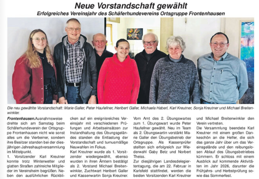 Weiterhin als erster Übungswart Hermann Betz zweiter Übungswart Peter Haufellner Zuchtwart Heribert Galler Schriftwart Michaela Haberl und Kassenwart Sonja Kreutner